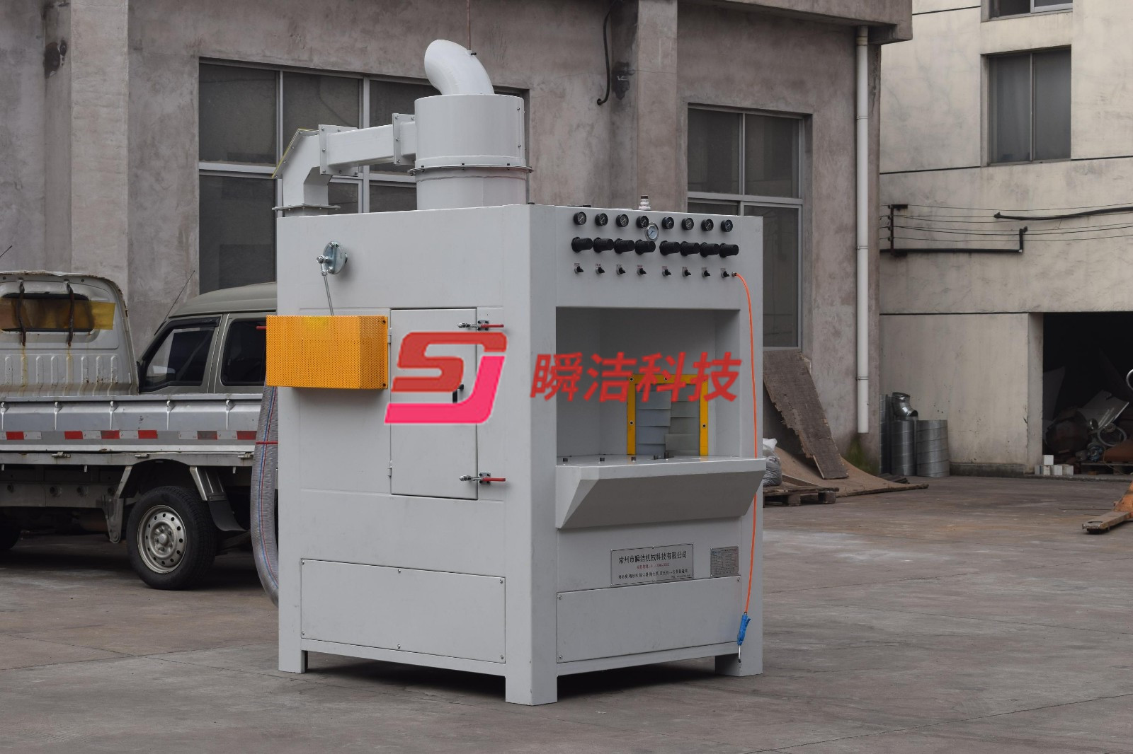 7、 該設(shè)備出料口設(shè)計(jì)吹凈槍3把,保證每個(gè)產(chǎn)品噴砂磨料無殘留,潔凈美觀。