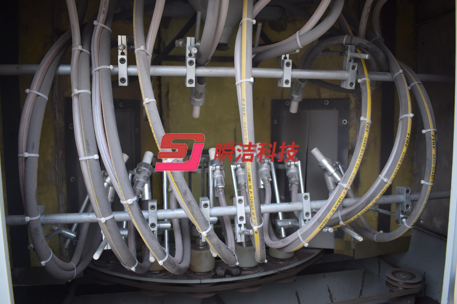 3、 大轉(zhuǎn)盤采取間歇式運(yùn)動,間歇頻率可數(shù)字化控制,根據(jù)客戶噴砂要求可自行設(shè)置,設(shè)計非常完美。