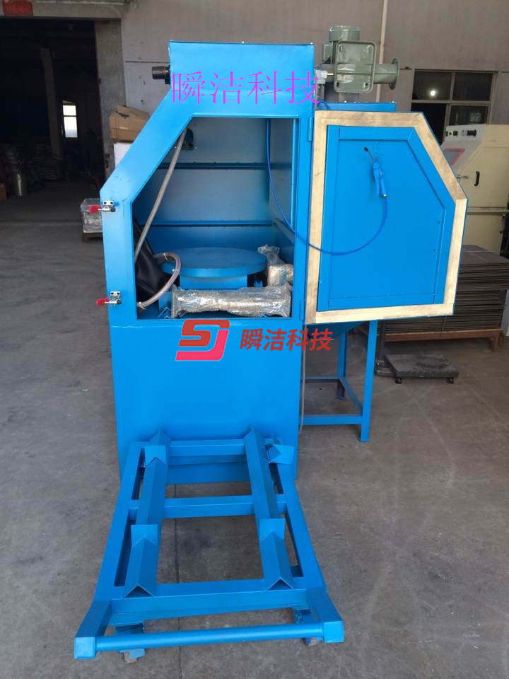 3、配備活動臺車,和轉(zhuǎn)盤,操作時將工件放在轉(zhuǎn)盤上,然后推入機(jī)內(nèi)即可噴砂作業(yè),操作簡單省力。