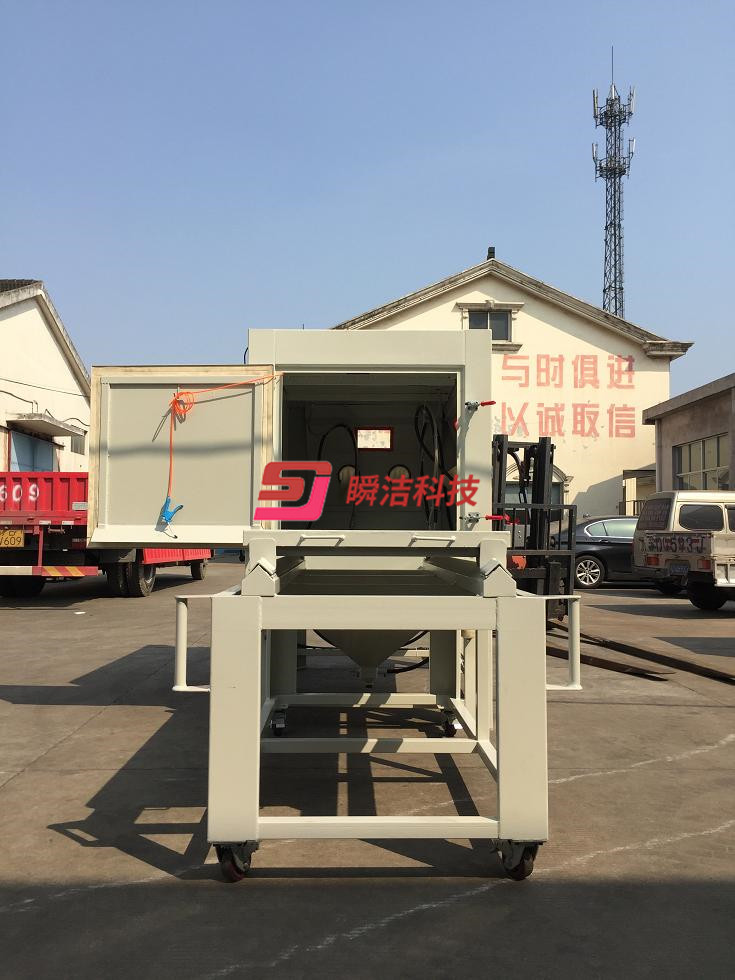 3、配備活動(dòng)臺(tái)車(chē),和轉(zhuǎn)盤(pán),操作時(shí)將工件放在轉(zhuǎn)盤(pán)上,然后推入機(jī)內(nèi)即可噴砂作業(yè),操作簡(jiǎn)單省力。