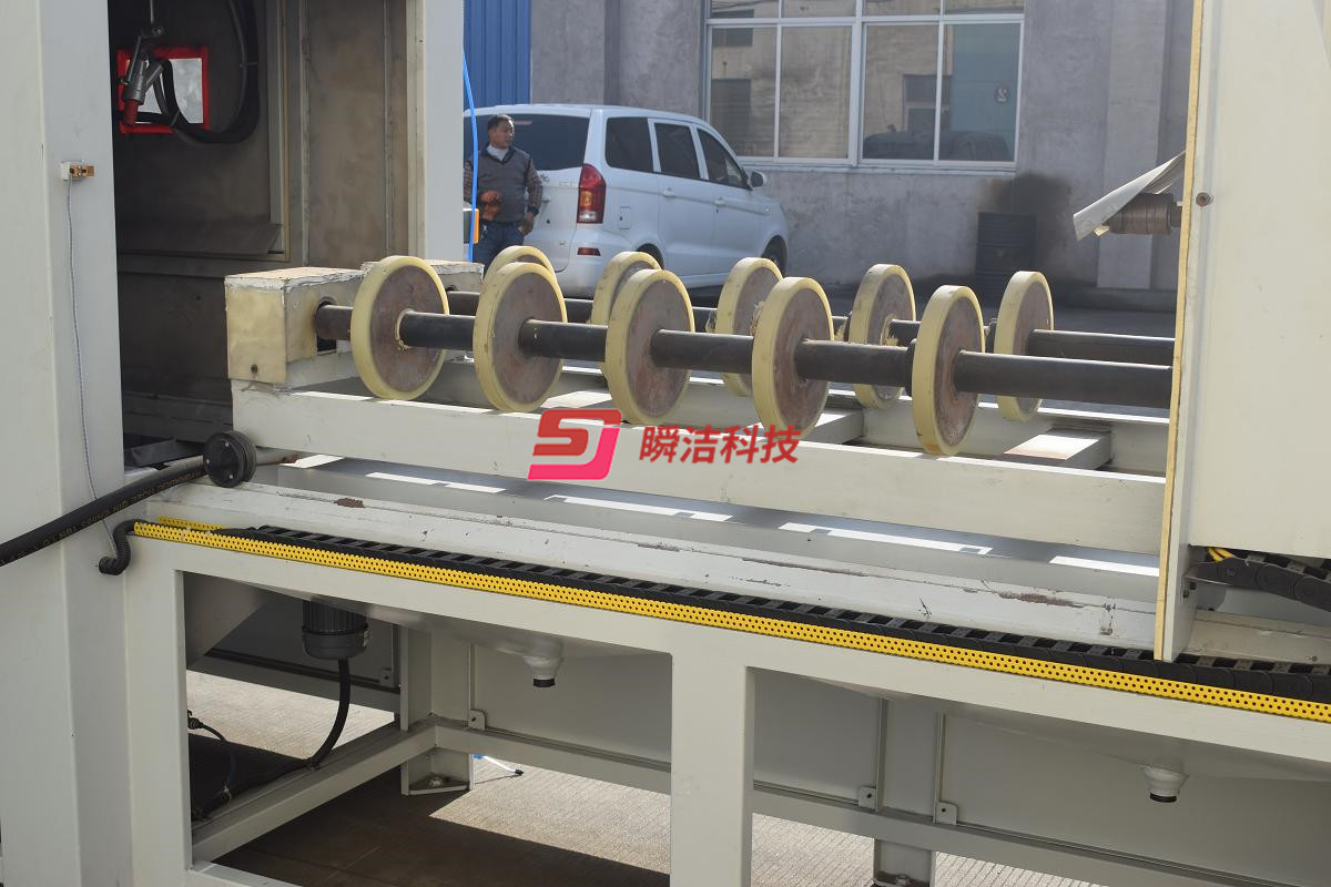 本機(jī)具有處理質(zhì)量高、低成本、強(qiáng)化、環(huán)保的突出優(yōu)點(diǎn),是輥管外壁表面強(qiáng)度強(qiáng)化和除銹去污的理想設(shè)備